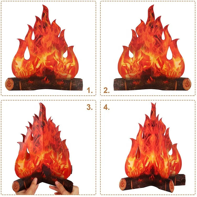 Centro de fogueira de papelão decorativo 3D para Halloween e Dia dos Mortos, peças artificiais, chama falsa, papel decorativo para festa