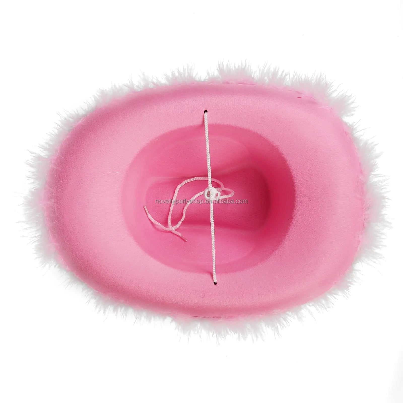 Chapéu de cowboy rosa com detalhes felpudos para casamento de solteiro e Halloween com detalhes felpudos para mulheres