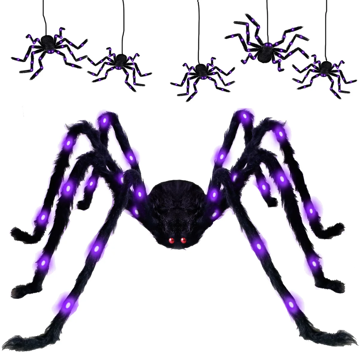 Halloween e Dia da Morte 60 cm Halloween ilumina aranha gigante quintal festa decoração de casa realista adequado LED Halloween aranhas peludas pretas